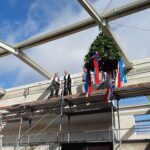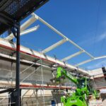 Heute konnte man schon aus der Ferne den Kran entdecken, der die Stahlträger auf das Gebäude hob. Beim genauen Hinsehen wurde deutlich, dass dies keine