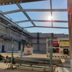 Diese Woche hat man wieder viele neue Dinge entdecken können: Der Fußboden in der Fahrzeughalle ist komplett fertig gestellt und die Wände dort wurden bereits