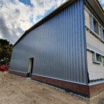 Beim heutigen Besuch auf der Baustelle fiel auf, dass die Metallfassade fast fertig gestellt wurde. Im Innenraum wurden weiter fleißig Heozungs- und Wasserrohre verlegt. Außerdem