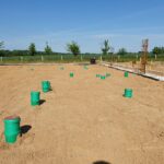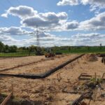 In den letzten Tagen wurden die Abwasserleitungen für das Gebäude eingebracht und das Planum wieder geebnet. Im Laufe der Woche wird dann noch Bewehrung eingebracht