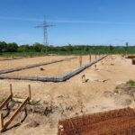 In der kurzen Woche vor dem Himmelfahrt-Wochenende wurden die Streifenfundamente für das Gebäude geschüttet.