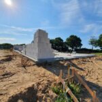 So langsam geht es vom Zweidimensionalen ins Dreidimensionale, die ersten Fragmente der Wände stehen! Bis Monatsende sollen die Wände des Erdgeschosses komplett aufgestellt sein.